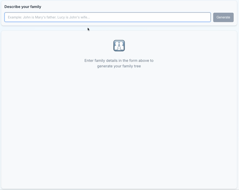 As a practical example, our users describe a family and the App is going to generate a visual representation of the family's tree.