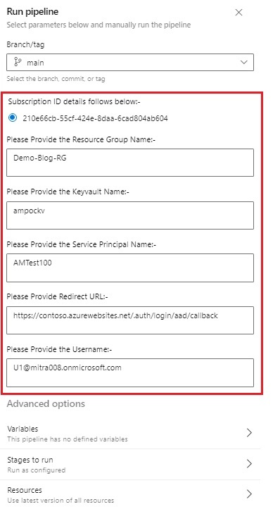The entire YAML pipeline is build using Runtime Parameters and Variables. No Values are Hardcoded.