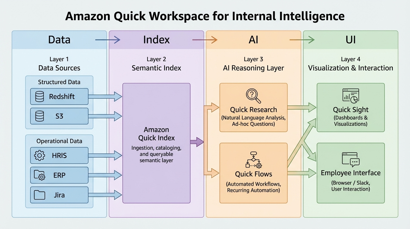 Amazon Quick stays in its lane for analytics, dashboarding, research, and workflow automation around business data.