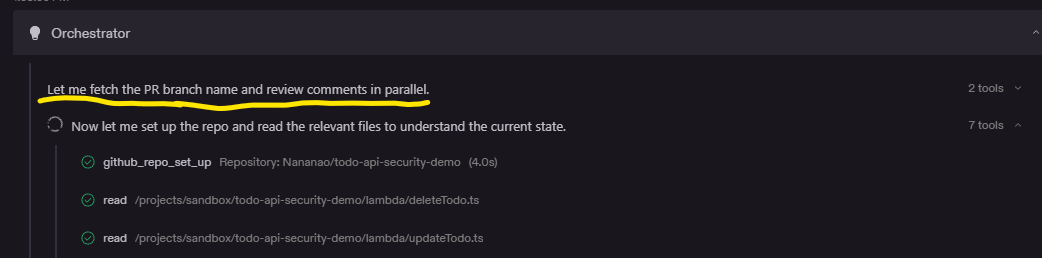 In Scenario 2, there were several suggestions from Security Agents in the PR, so this time we will revise based on these suggestions and have the Kiro autonomous agent learn from them.