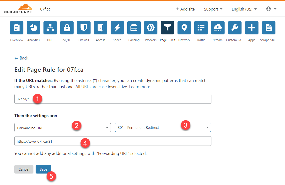 Create a rule that will redirect all the incoming traffic from the naked-domain to www.domain. On the option on the top, click the Pages Rules (B). Then Click the Button Create Page Rule