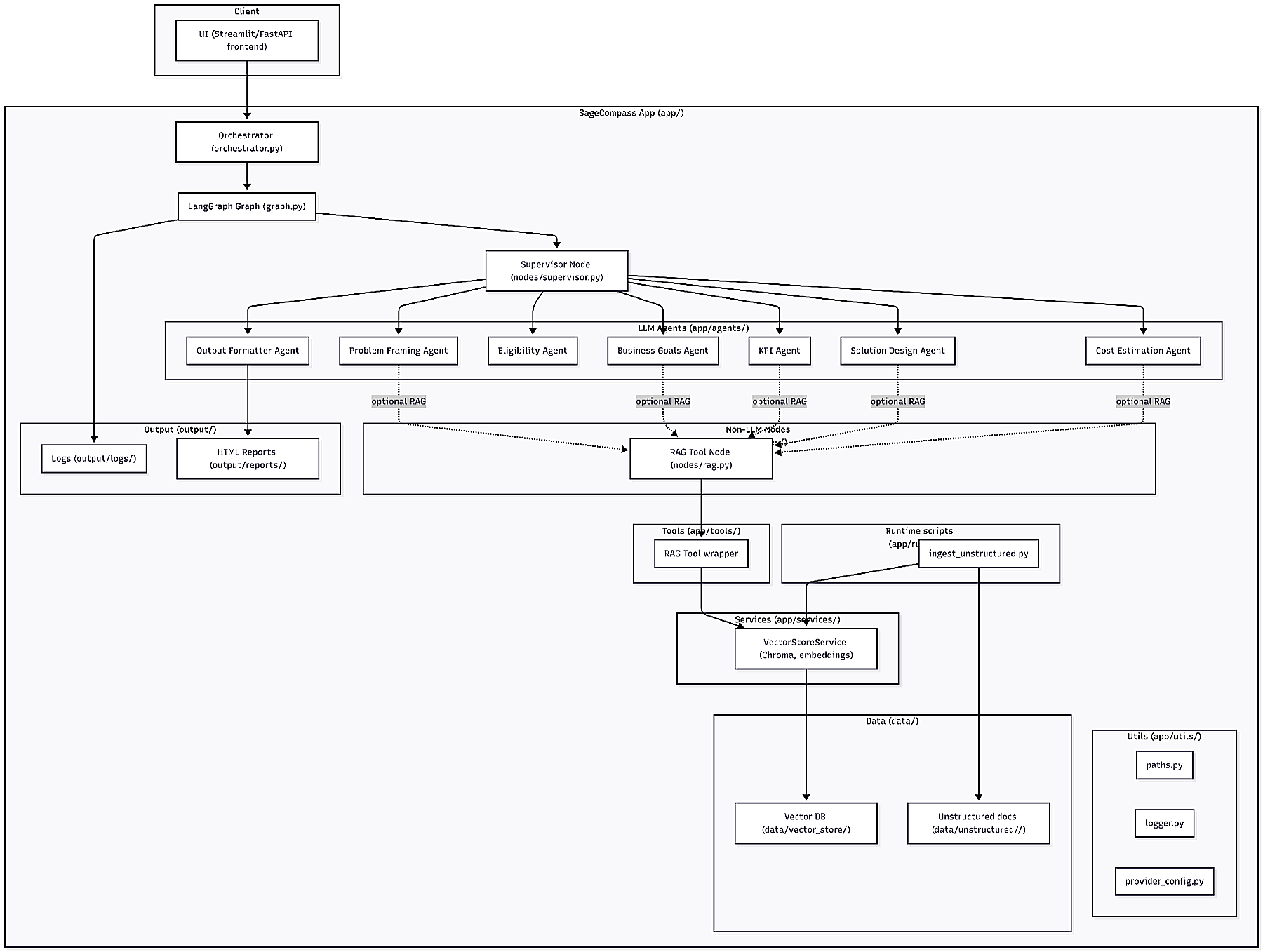 SageCompass v6 is currently here. It only has one of the v5 Agents (Problem Framing), but it has the stuff that makes a platform a platform: