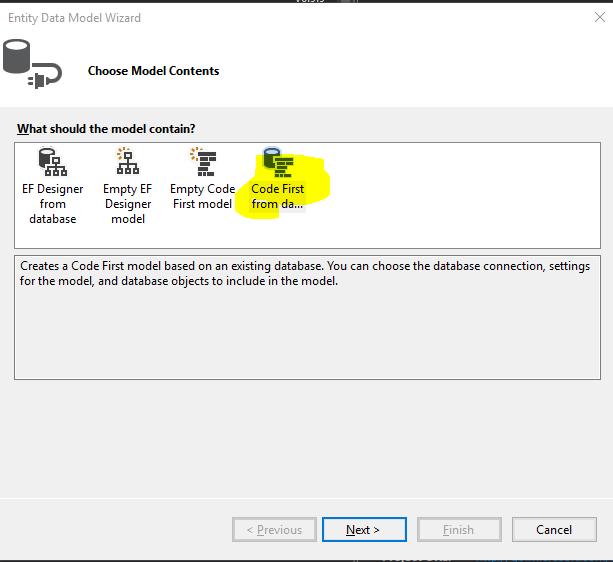 - Select Code First from database