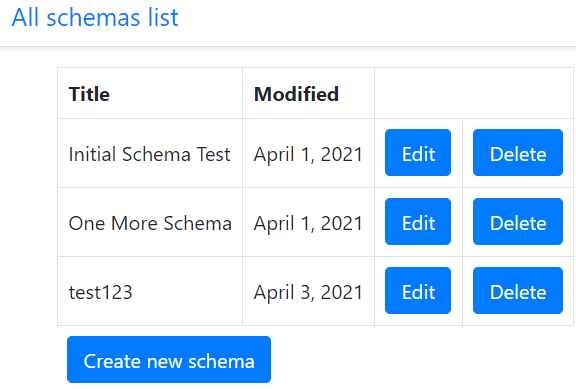 Moreover, we have to develop a form "Create new schema" and a page with a list of all available schemas.