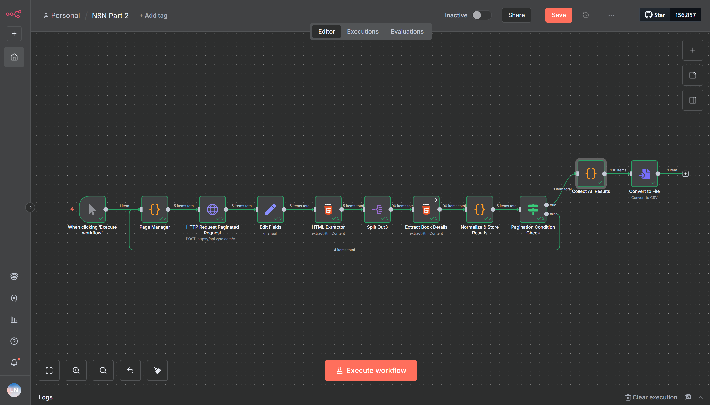 The rest of the workflow remains the same, till the second HTML Extract node (where we parsed the book name, URL, price, rating etc. in Part 1).