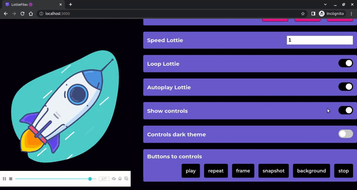 Generally this is all you would need to use lottie in your application, but let's see what other properties this component offers.