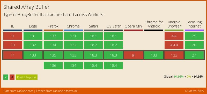 Learn more at: https://developer.mozilla.org/en-US/docs/Web/JavaScript/Reference/Global_Objects/SharedArrayBuffer#Browser_compatibility or https://caniuse.com/#feat=sharedarraybuffer