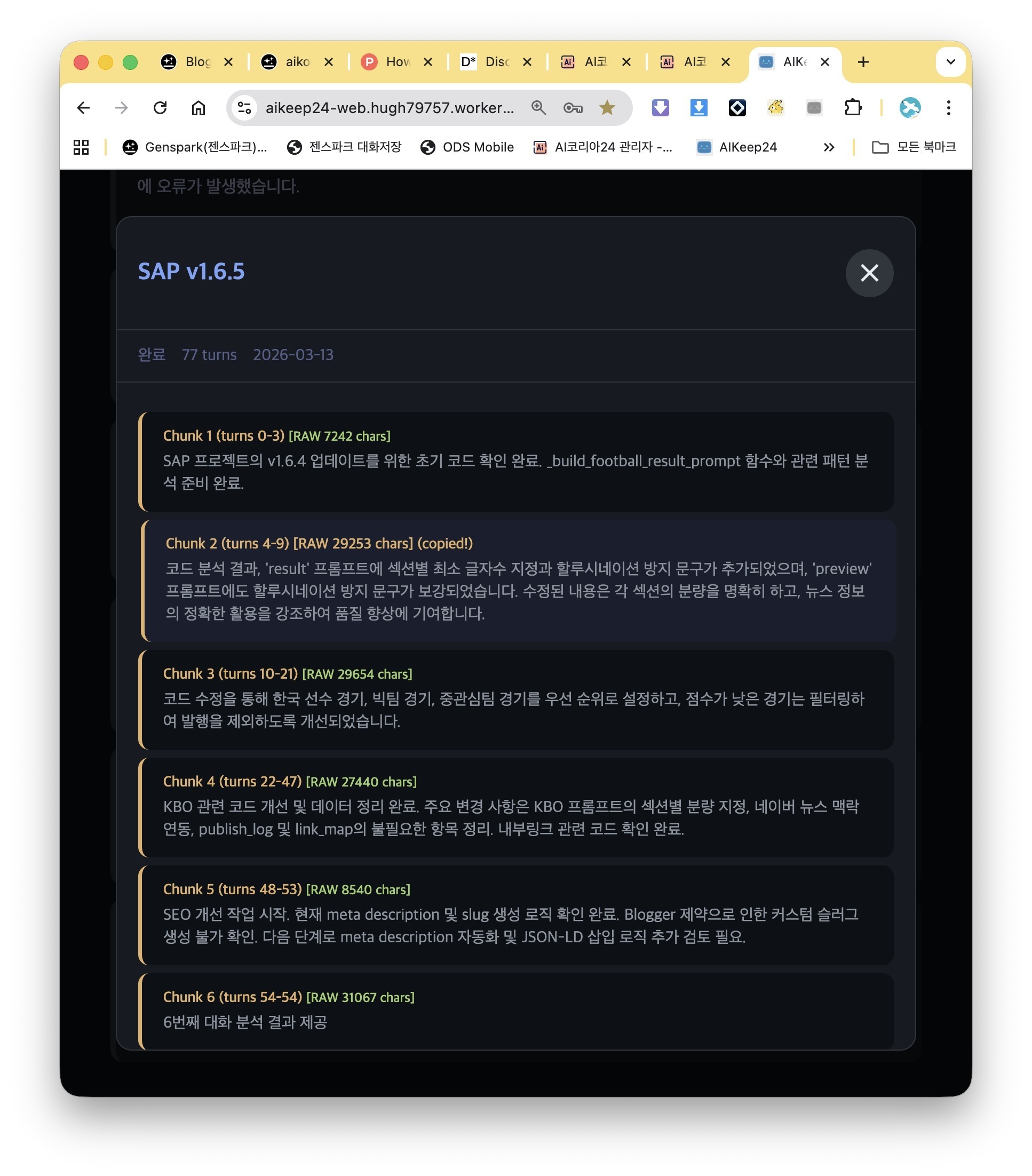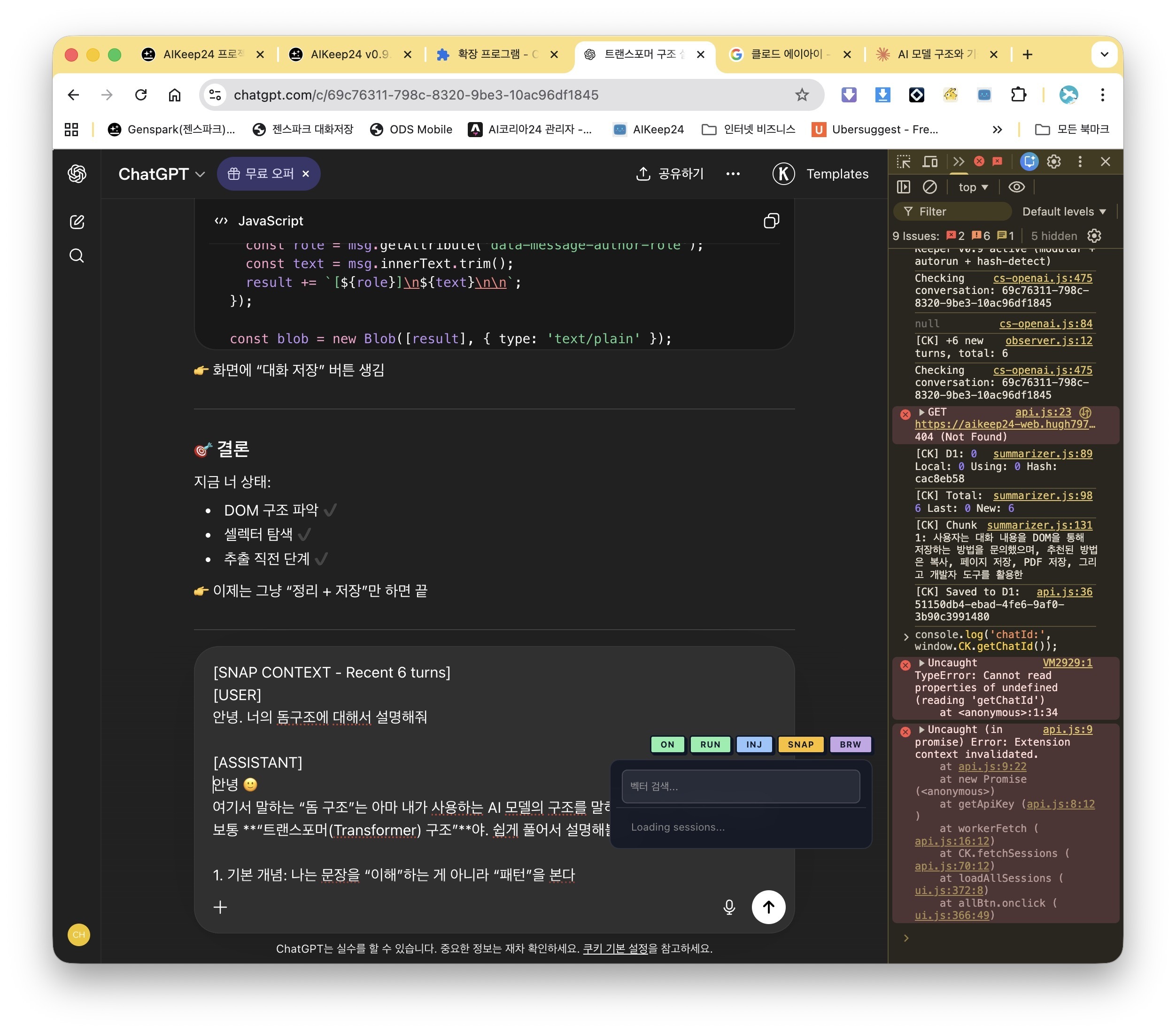 AIKeep24 — a Chrome extension that detects conversation turns in real-time and uses a local LLM to auto-summarize and tag every conversation.