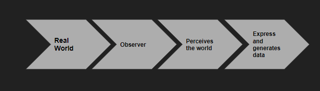 In the scenario described in the image above every observer may perceive the real world in a different manner and express accordingly e.g different persons may have a different opinion on some topic.
