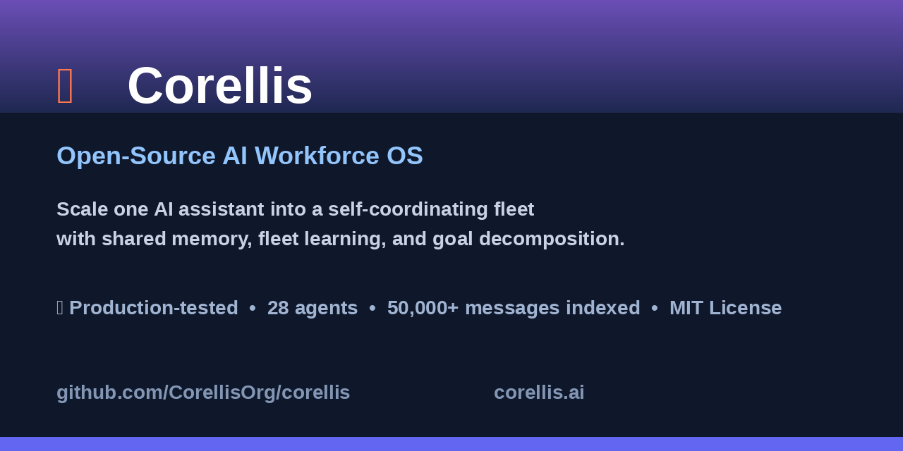 If you're curious, we open-sourced everything: CorellisOrg/corellis on GitHub. MIT license, runs on Docker, works with any OpenClaw setup.