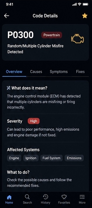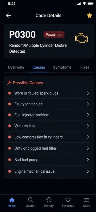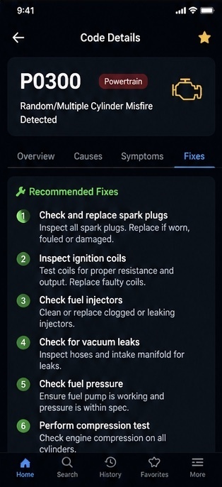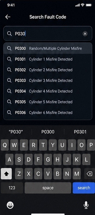 Search and decode 3000+ car fault codes instantly