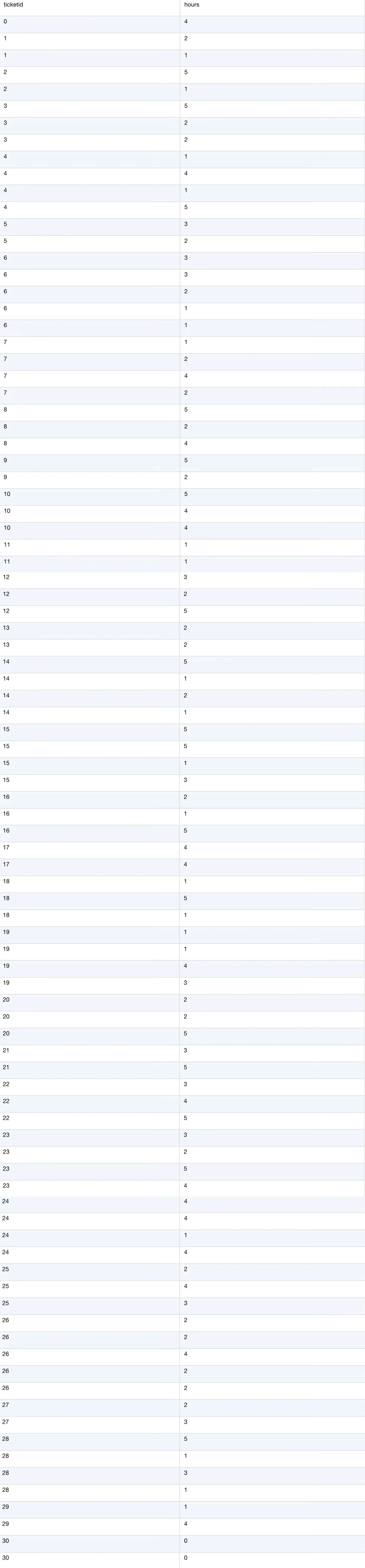 A1: Load data and calculate the direct working hours for each ticket based on the ticket table.