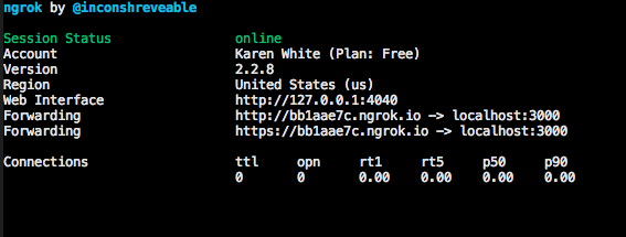 When you start ngrok, you’ll see a printout like this in your terminal: