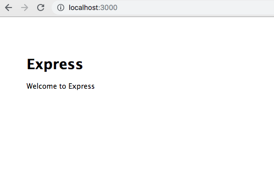 npm startto start the app. By default, Express generator apps start the server on localhost:3000. If you want to change the port, it’s defined in the app’s bin/www file on line 15, but we’ll leave it on port 3000 for now.Open a browser window and navigate to http://localhost:3000. You should see the Express app home page:
