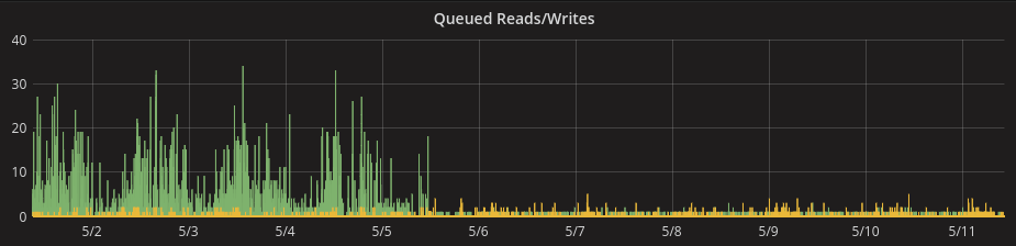 [caption id="attachment_495" align="aligncenter" width="925"] Writes stayed fairly constant while queued reads fell dramatically.[/caption]