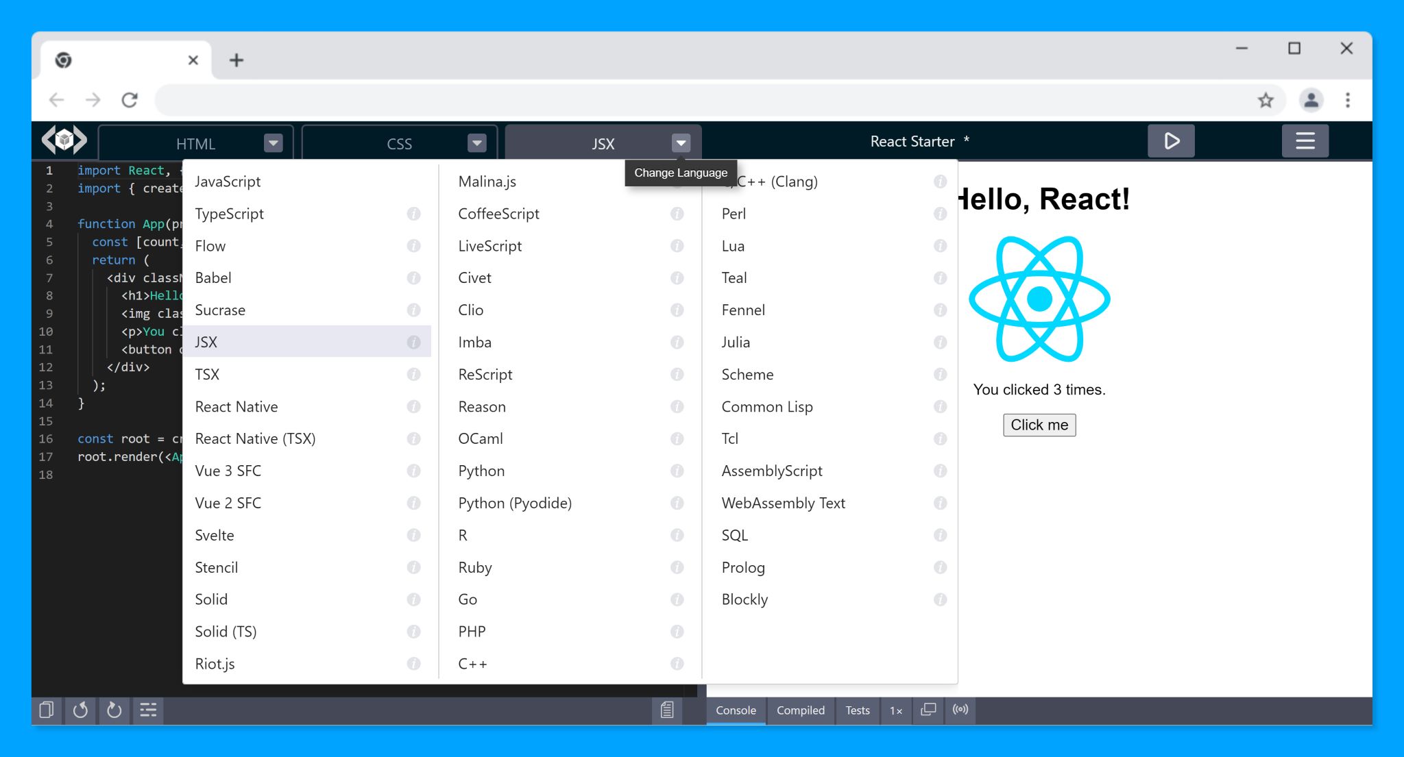 However, please note that LiveCodes is currently in public beta. It is in active development.