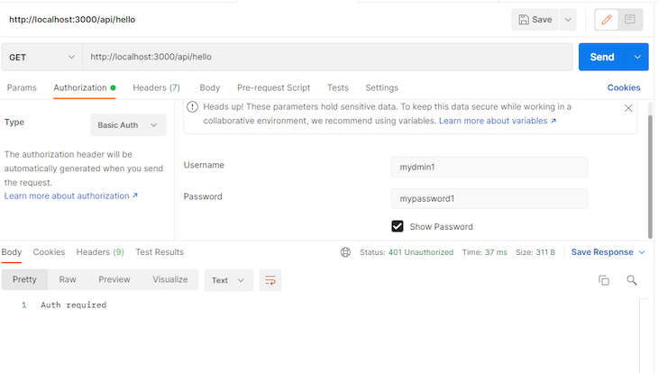 Let’s see how we can use middleware in our API for authentication by creating a basic password authentication and testing it with Postman.