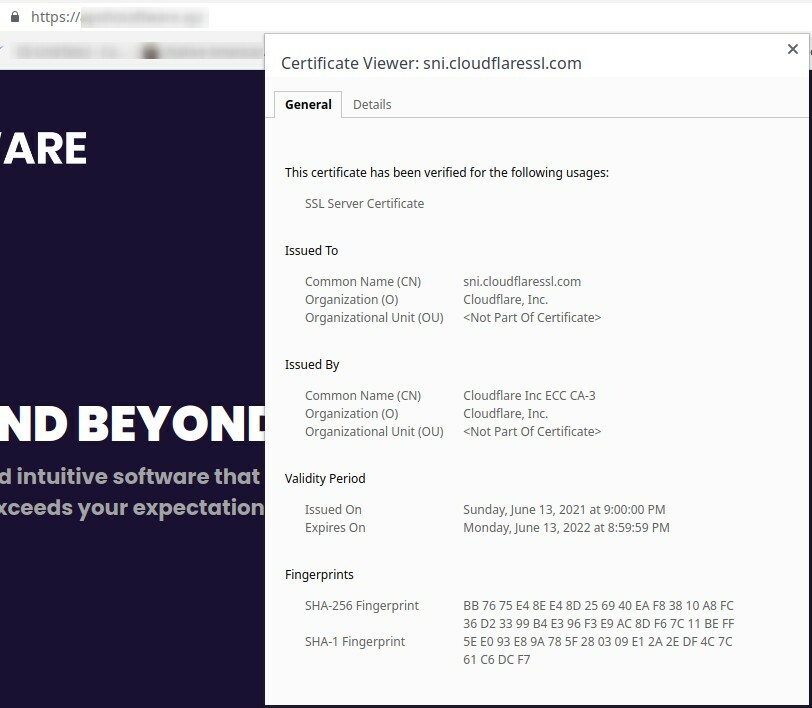 Okay, I'm totally unfamiliar with it. I'm surprised you're not getting a Cloudflare certificate on your browser when accessing a DNS entry that is proxied through them