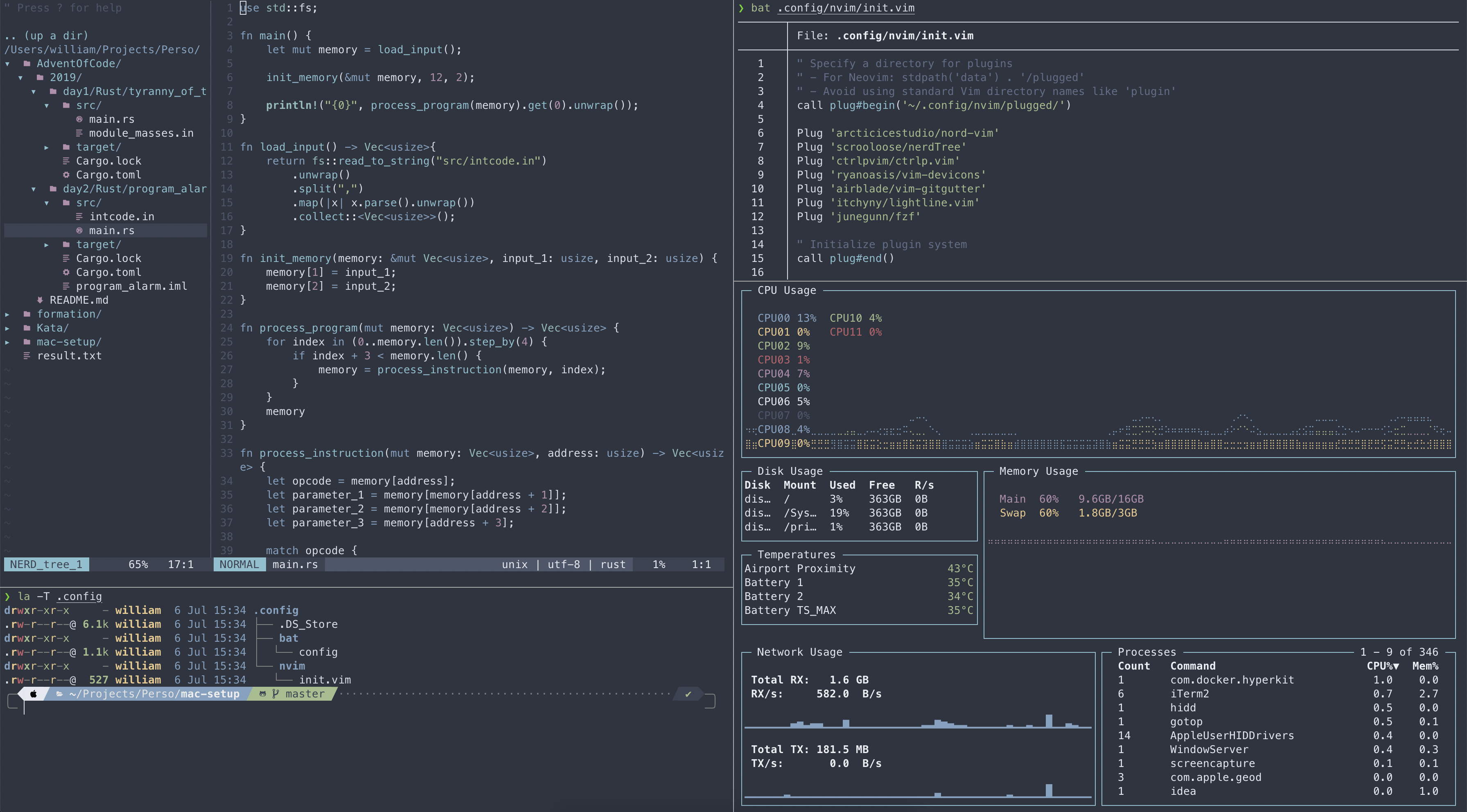 On Mac and Linux I use iTerm , with zsh + powerlevel10k + Nord