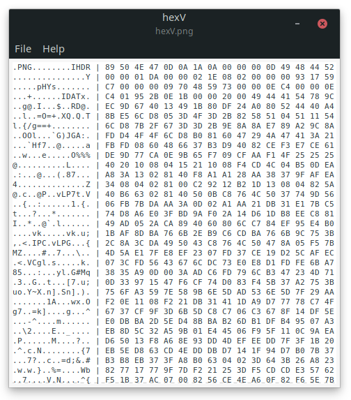 I first thought about making hexV while I was working on another project that involved parsing and rendering large images without using any official libraries like libpng. I needed something that I could use to learn and understand how images are structured and stored depending on the type (PNG, JPEG, BMP...), and also that'd help me debug the parsers I wrote for that project.