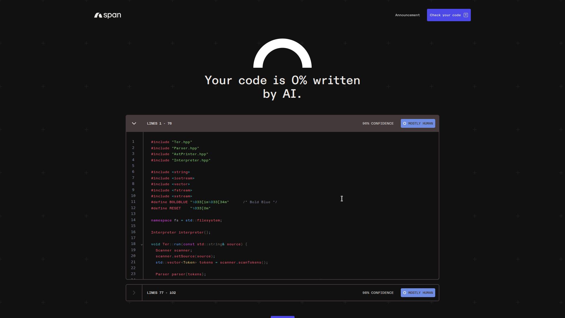 E uma das tecnologias desenolvidas para evitar códigos "mal feitos", geralmente PROCESSADOS por IA, há um site que detecta com 95% de precisão.