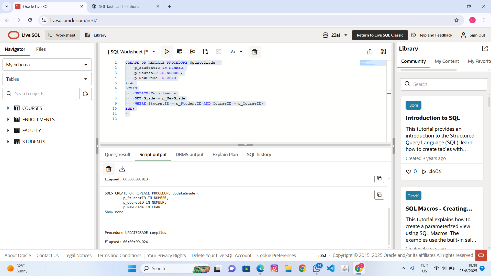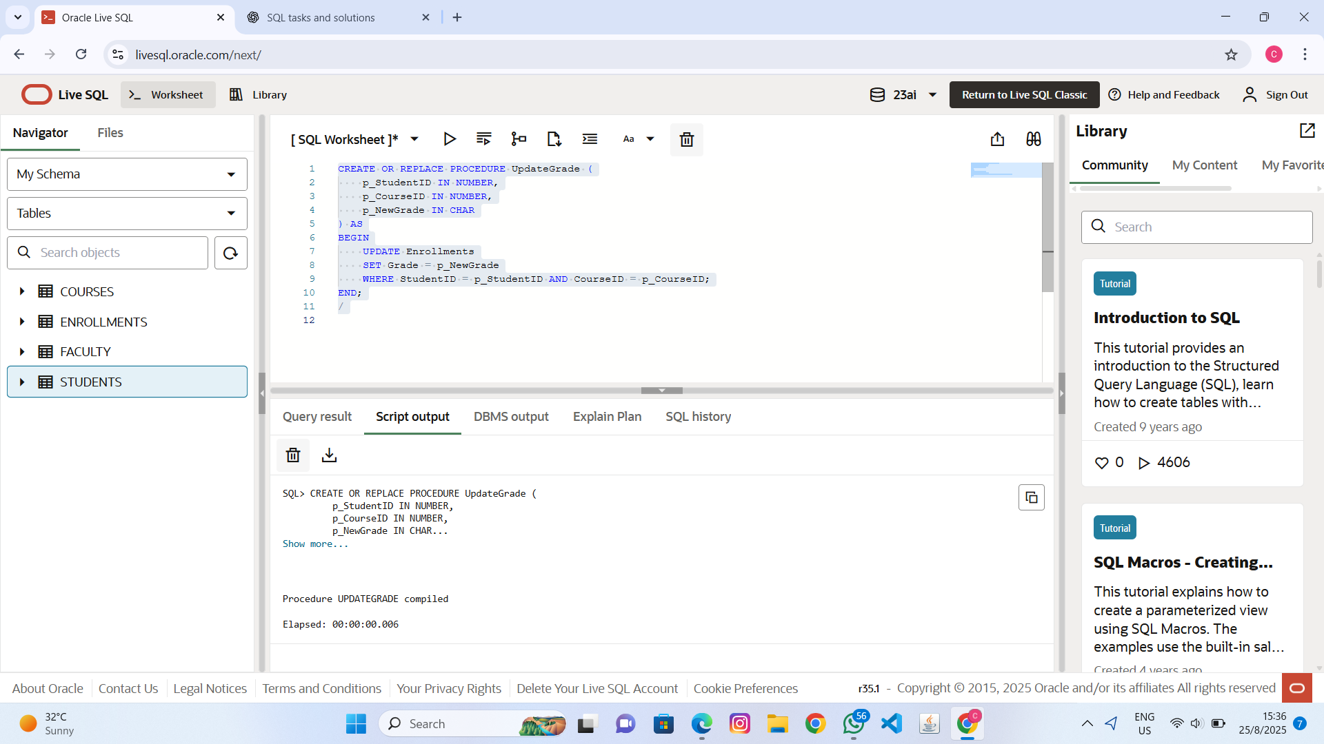 I’m a college student currently learning about databases, and I recently worked on an assignment where I had to build a Student & Course Management System using SQL. It was a great hands-on way to practice what i have been learning in class like creating tables, inserting data, using joins, writing queries, and even building stored procedures.