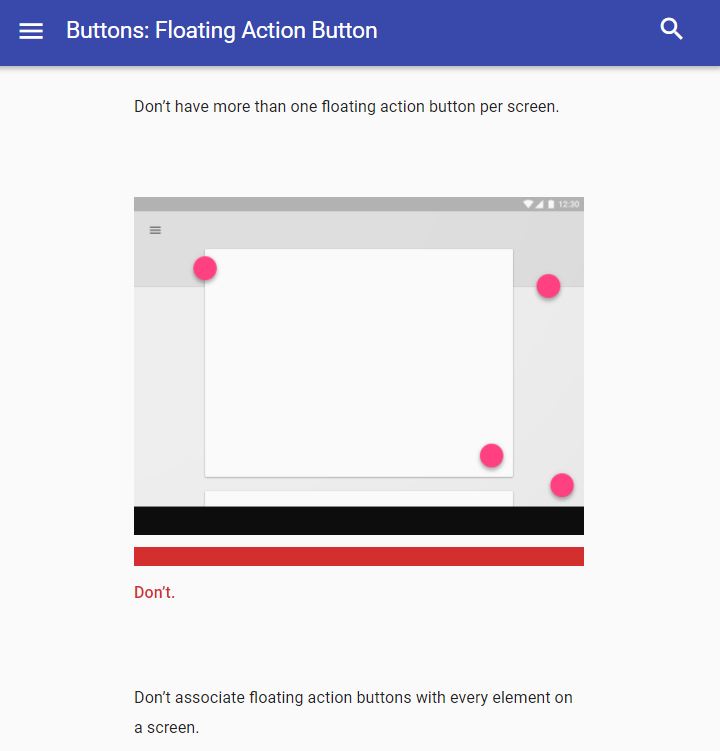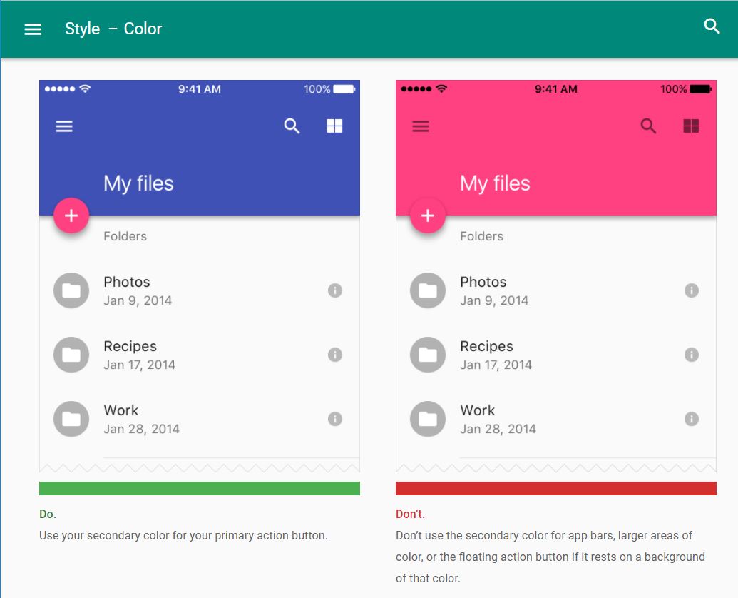 Material Design guidelines can help you to take those ambiguous decisions by telling you where and what you have to place in your app to make it more intuitive. Let me give you some examples of DOs and DON'Ts: