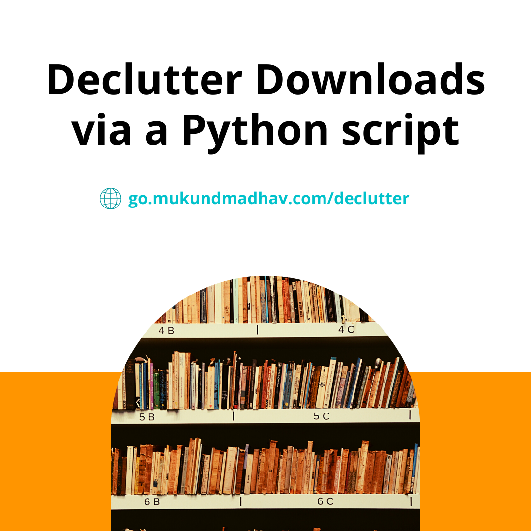 This resulted in an epiphany that I needed to declutter my Downloads folder. Being the kind of lazy person I am, instead of manually cherry-picking the files, I created a python script to declutter the downloads folder.