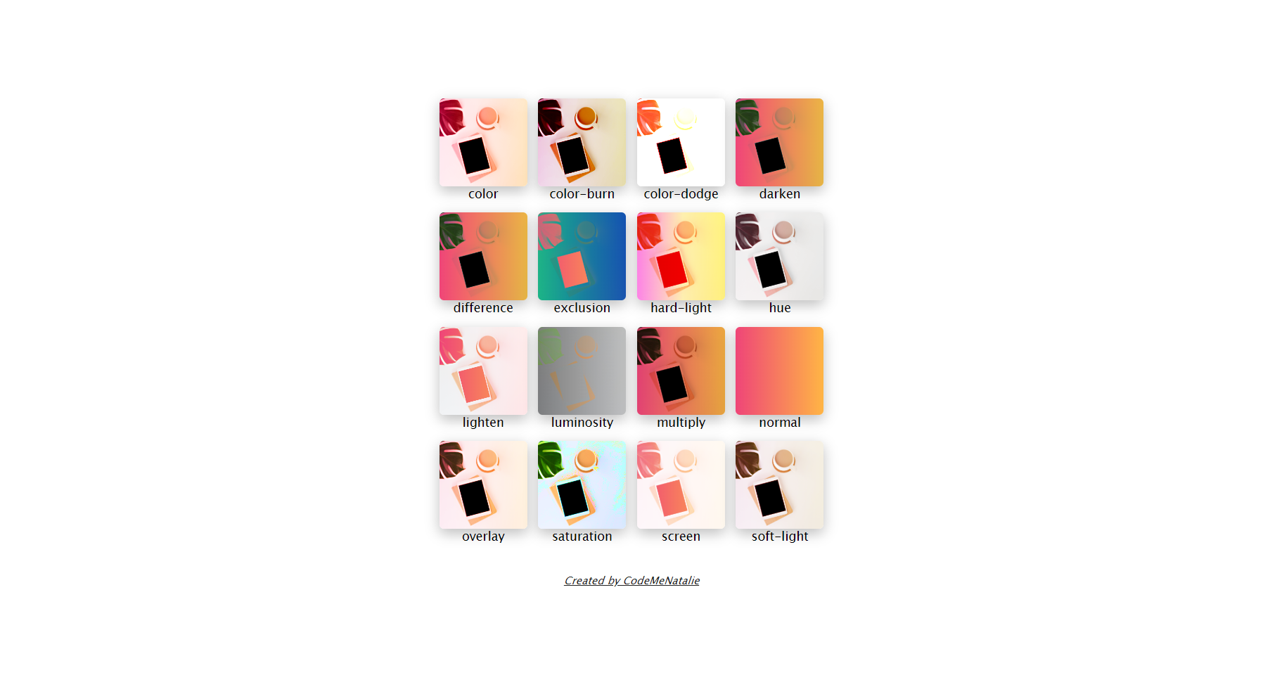 In my new blog post I described CSS background-blend-mode property with examples: background-blend-mode property