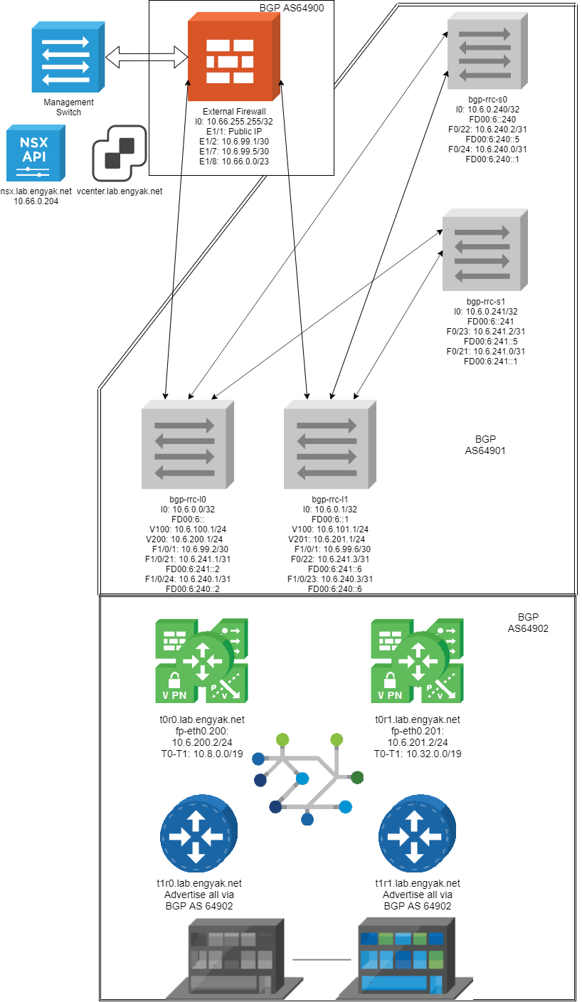 To set up an anycast vIP in NSX-T after standing up your base infrastructure (already depicted and configured), all you have to do is stand up a load balanced vIP at multiple sites. NSX-T takes care of the rest. Here's how: