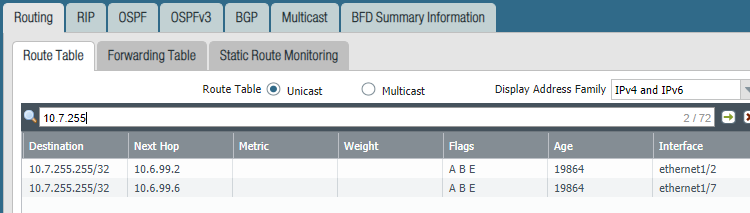 Repeat the process for creating a new load balancer and virtual server on your second Tier-1 interface, pinned to a completely separate Tier-0. If multipath is enabled, you should see entries like this in your routing table: