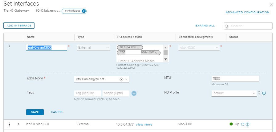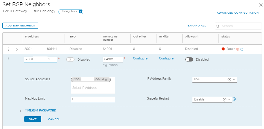 And that's it! Interestingly enough, you can run IPv6 only on NSX-T vn-segments as well - just create a new external interface, attach it to the VyOS VM via a vn-segment, and peer BGP.
