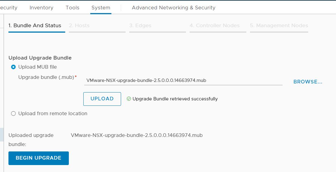 We start these in the usual way, by uploading the upgrade bundle (.mub file):