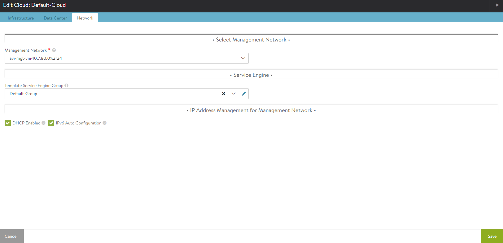 Avi also supports automatic SE deployment - which means that automatic IP configuration is important. Avi supports SLAAC (IPv6) and DHCP (IPv4) for this purpose.