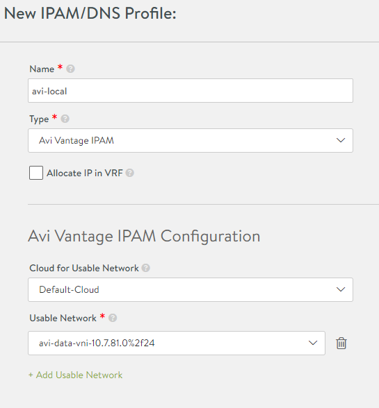 Note: This IPAM profile does need to be added to the applicable cloud to leverage auto-allocate functions with vIPs.