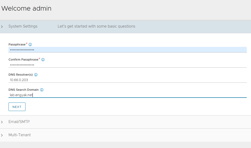 Installation is pretty easy - once the OVA is deployed, I used my CI/CD pipeline and GitHub to deploy DNS updates and logged right into the installation wizard.