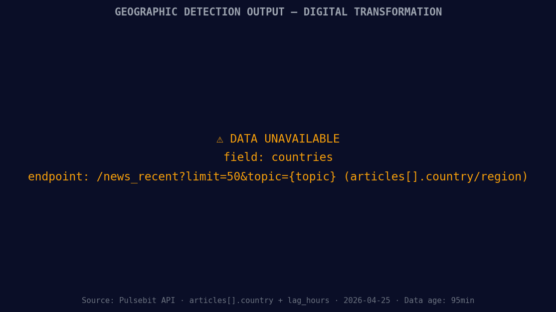 [DATA UNAVAILABLE: countries — verify /news_recent is returning country/region values for topic: digital transformation]
