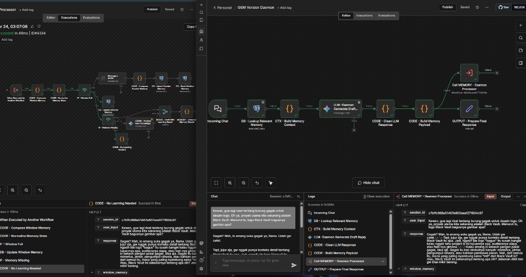 Building in public means showing the raw process. As you can see in the workflow below, it's not a simple API call. It's a structured Memory Processor designed to prevent "AI Amnesia."