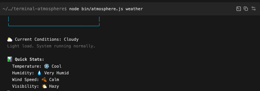 🌍 Terminal Atmosphere is an AI-powered CLI tool that transforms your terminal into an intelligent development environment monitor using a unique weather metaphor to represent system state.