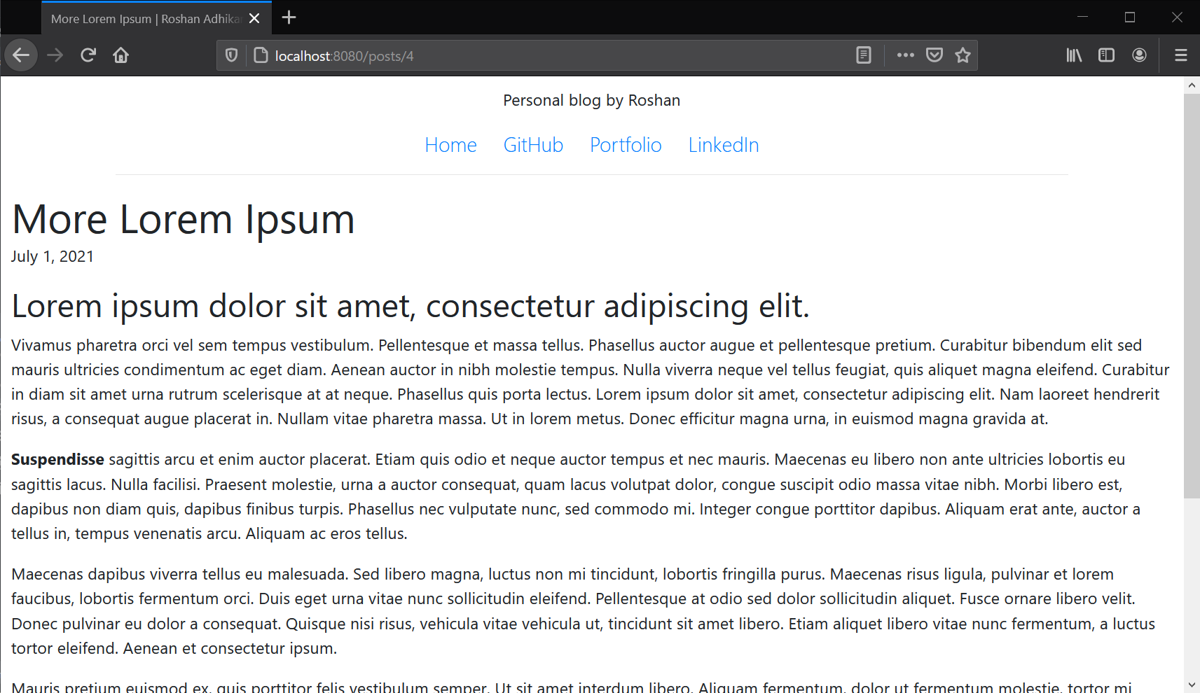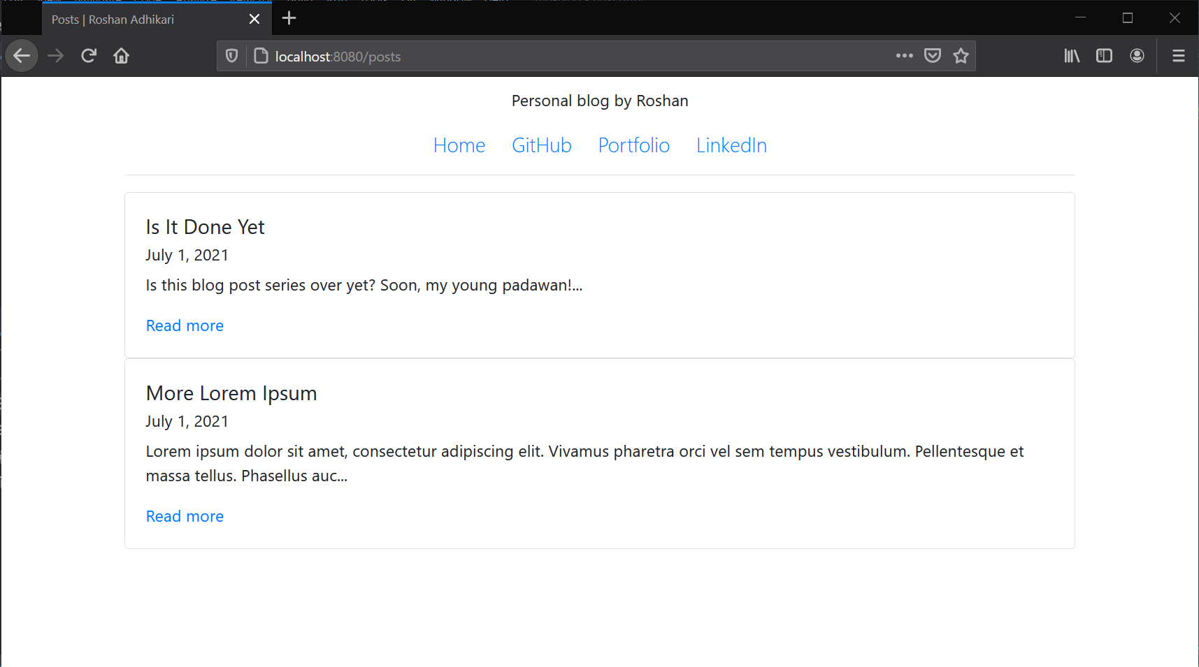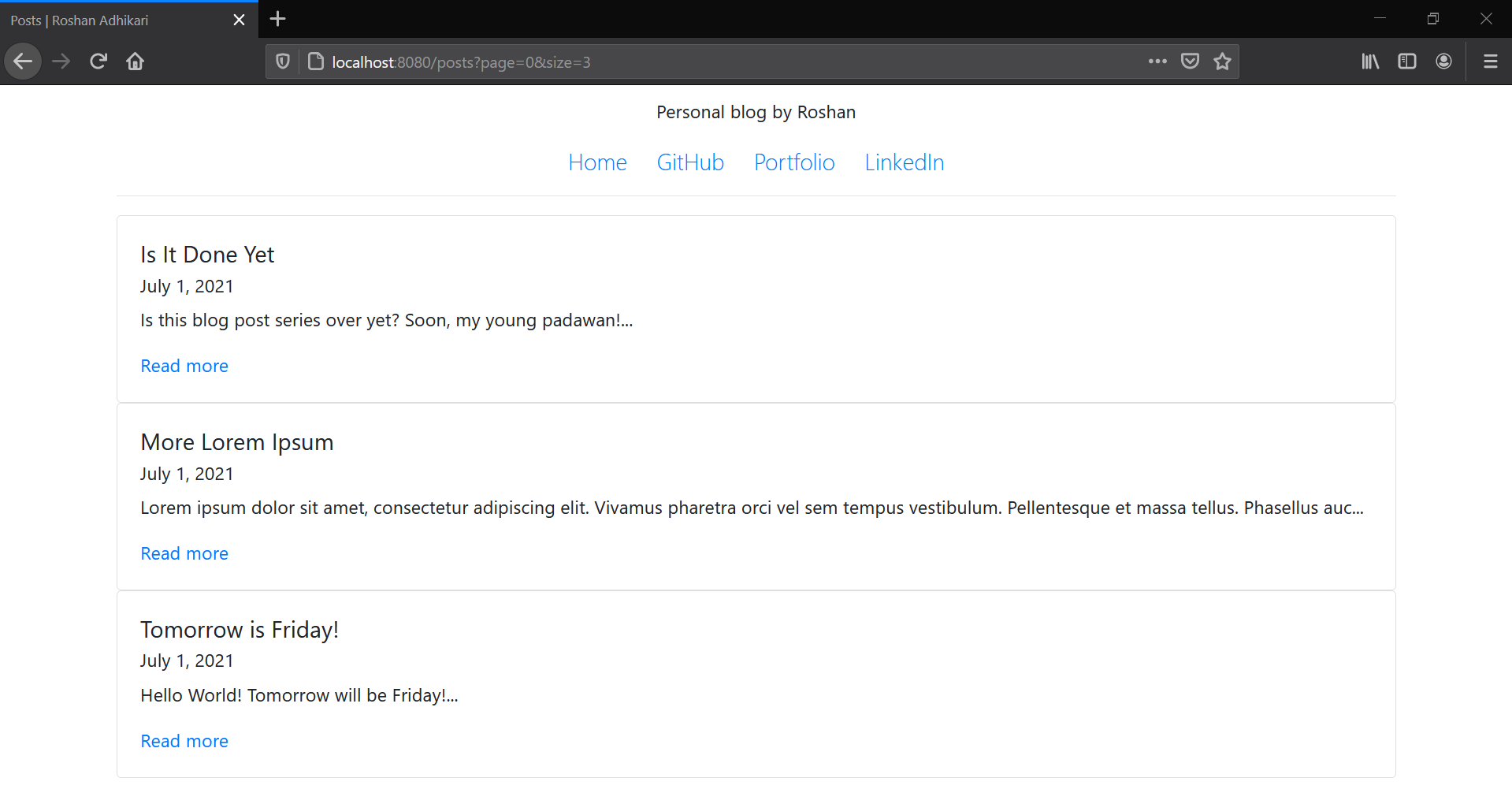 This is it for the coding portion of this series. To test if the pagination works, add some more Markdown files in the resources/posts directory, and fetch them from the website.