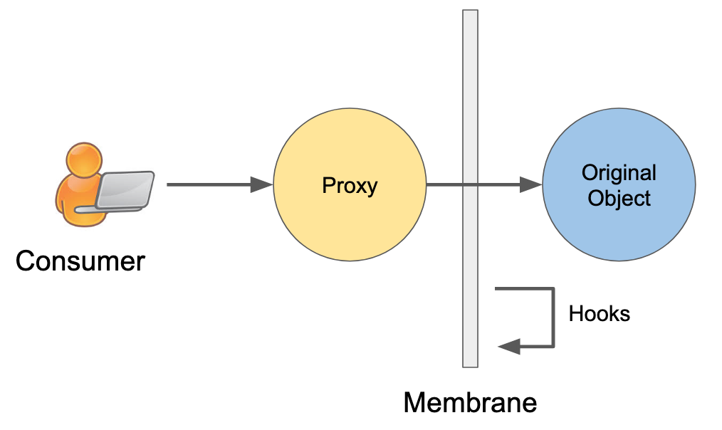 With this library, a developer can create a membrane and proxy objects with the simple code bellow: