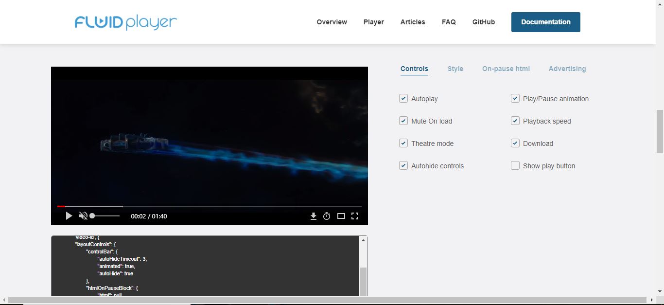 Fluid Player can be customized by setting some optional parameters. The full list of parameters can be found under Configuration