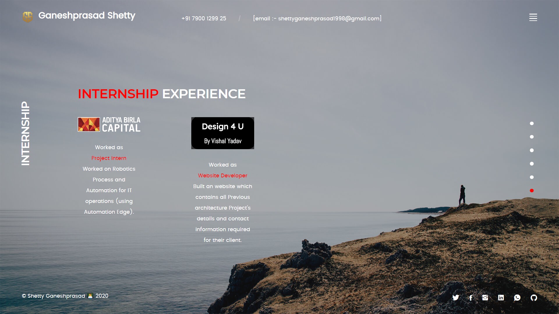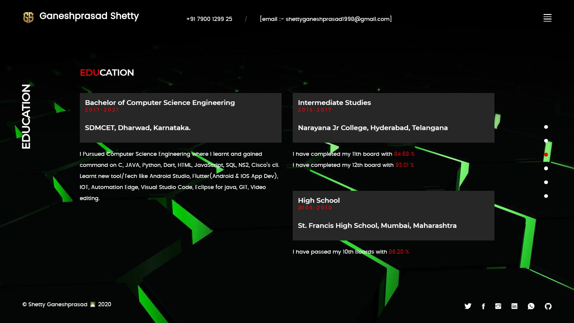 This is my own portfolio website. It contains Education, all Previous Project's details, Certification and contact information.