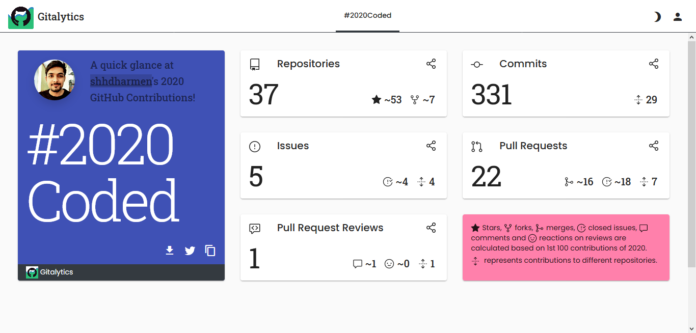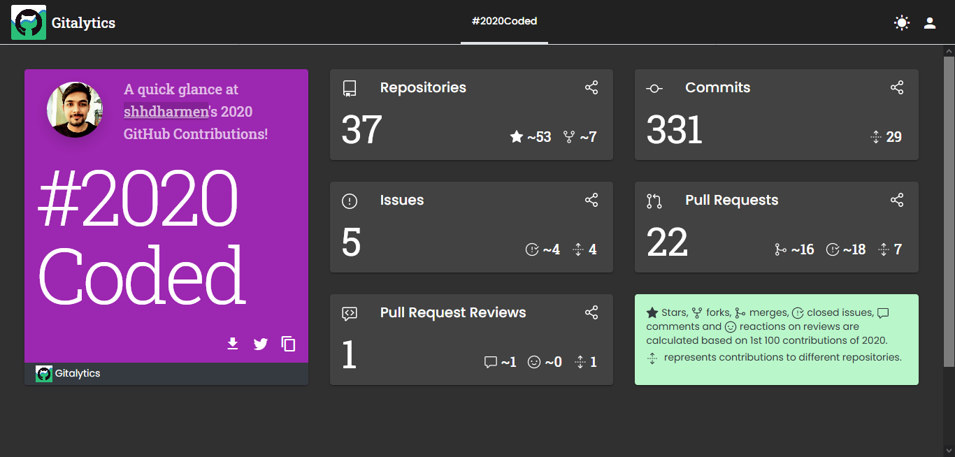 I got inspired from Spotify Year in Review feature and thought that developers should also see their GitHub Year in Review, a.k.a #2020Coded.