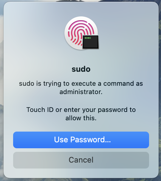 You should be prompted to authenticate using Touch ID. If the command executes after Touch ID authentication, the setup is complete.
