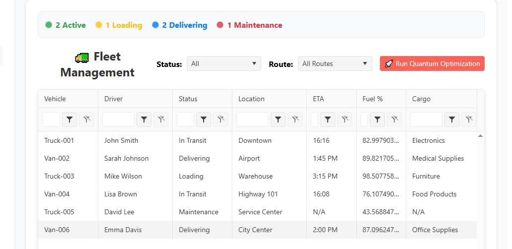 - Inefficient Route Planning: Reduces fuel consumption by 18.3% through quantum optimization