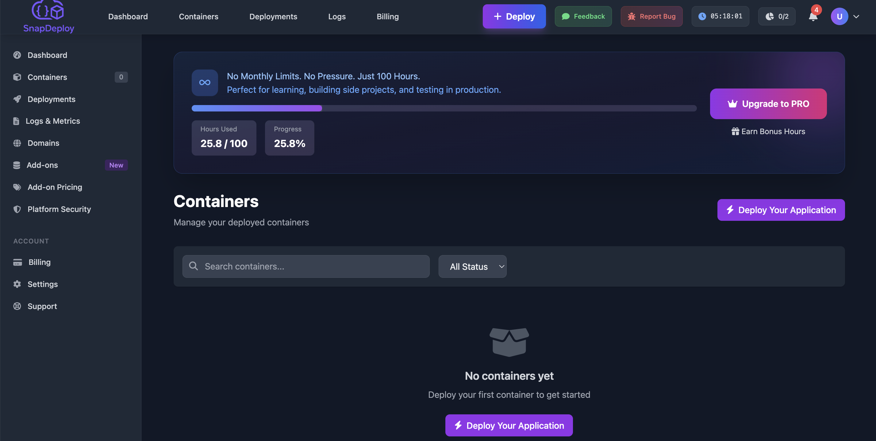 ✅ HTTPS URL (yourapp.snapdeploy.dev)