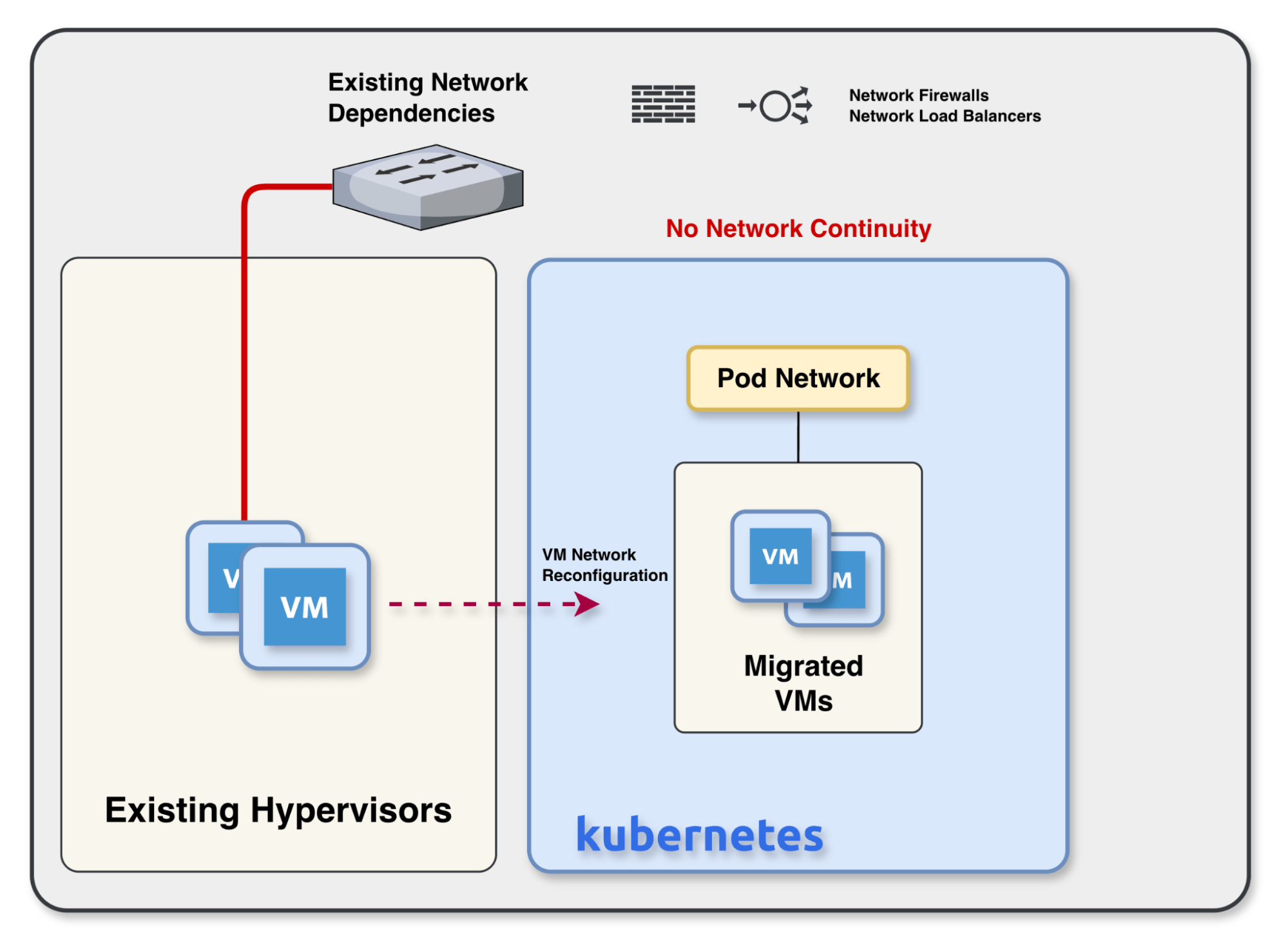 Lift-and-shift VM migration to Kubernetes often breaks down because the network model does not move with the workload. That forces teams to introduce workarounds such as VIPs, re-addressing, and additional operational complexity, which can quickly turn a simple migration plan into a much larger project.