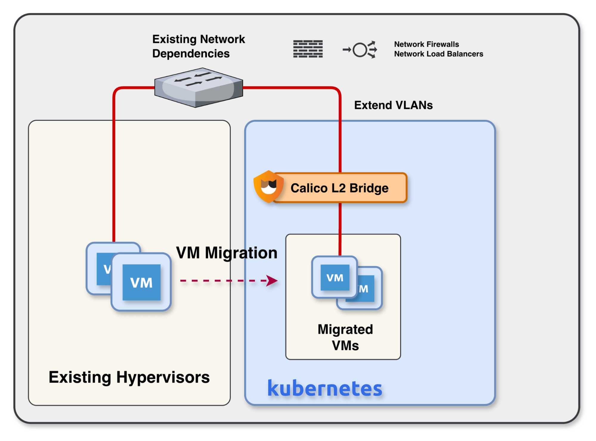 - Do we need to maintain L2 adjacency between our legacy VM clusters and new Kubernetes nodes during a phased migration?