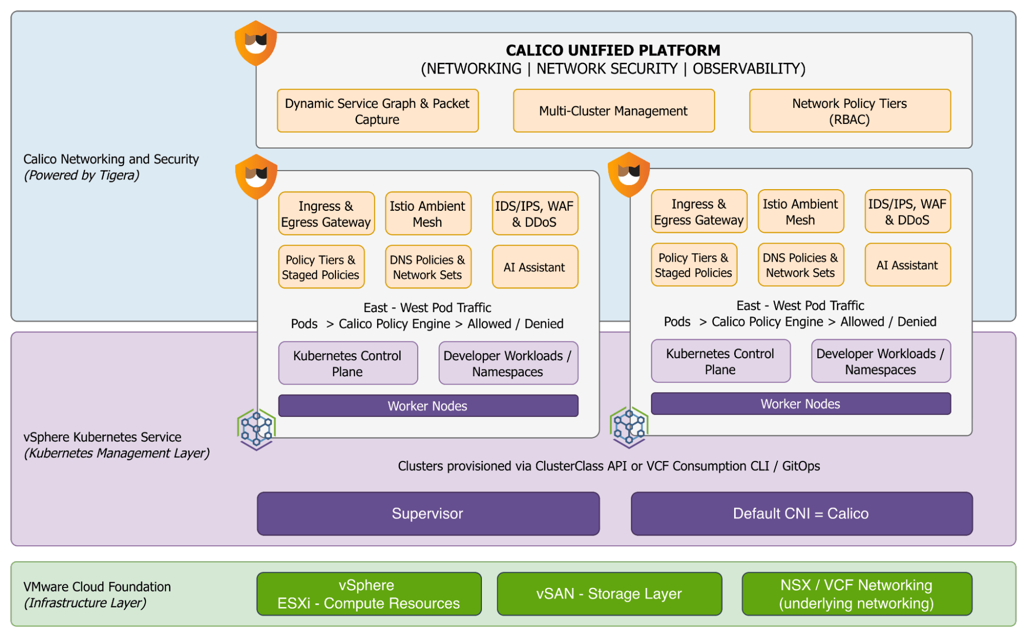 | Calico policy verdict (allow/deny + which rule) | ✗ | ✗ | ✓ | ✓ |